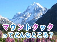 マウントクックは、ニュージーランド南島のクイーンズタウンとテカポの間にある世界遺産に登録されている山。クライストチャーチから車またはバスで約5時間30分。テカポからは、車またはバスで約1時間半。クイーンズタウンからは、車またはバスで約4時間。