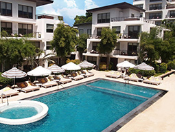 マリバコ ブルーウォーター ビーチ リゾートの客室は、アジア風の1棟4室の2階建てで、フローリングの床に木製の家具と自然素材を生かした温かみを感じます。広々とした敷地には木が茂りプライベートビーチには茅葺のパラソルが並ぶ落ち着きの有る雰囲気のリゾートです。マリバコ ブルーウォーター ビーチ リゾートには、メインプールのほかにはキッズプールもあり、ファミリーで楽しむにもぴったりです。
