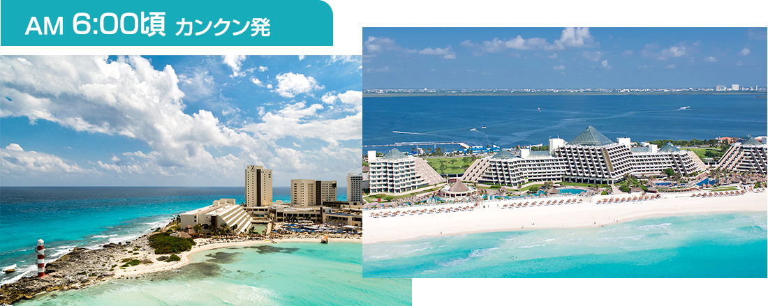 カンクンのホテルゾーンを出発します!(各ホテルへお迎えにあがります。)