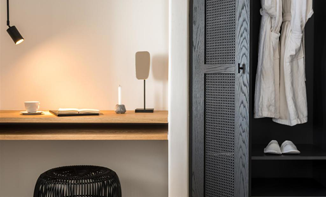 アンドロニスラグジュアリースイーツは、25室の客室どこもカルデラビュー。客室、パブリックスペースの床はシックなグレーで、白い壁とのコンビネーションがクールな雰囲気です。
