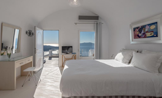 サントリーニ島らしい純白を基調とした洗練されたラグジュアリーホテルキリ二