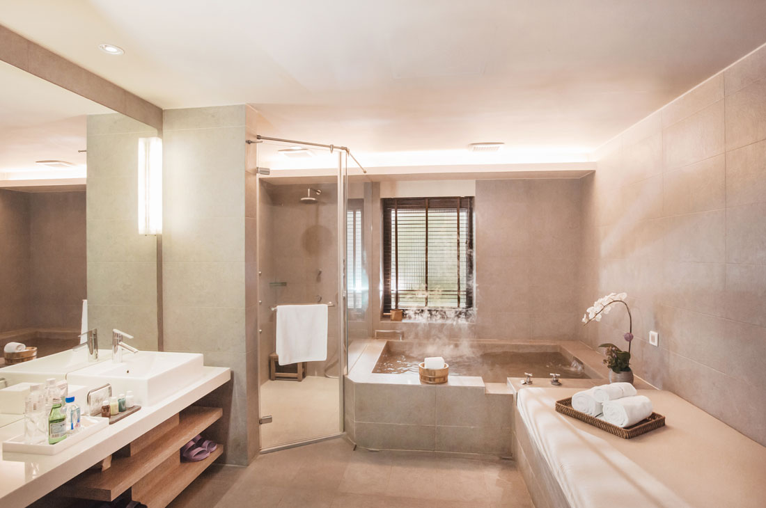たくさんのホテルを見てきたオーナーが、なによりこだわりたかったのが、室内アメニティだったとのこと。 全客室に特別に用意したエルメスのアメニティがあるのは嬉しいポイント!お部屋のミニバーにあるミネラルウォーターは「FIJI」と「San Pelleino(天然炭酸水)」、ウェルカムデザートには台湾の季節の一品をサービスしています。 大浴場の脱衣所には、リラックスルームがあり、温泉に入ったあとにゆっくりソファーに座って休憩ができます。温泉は最大20名以上が入らないように常にコントロールしているという徹底ぶり! 露店風呂では30分に1回雪が降るという遊び心があるパフォーマンス等、細部までこだわりがつまっています!