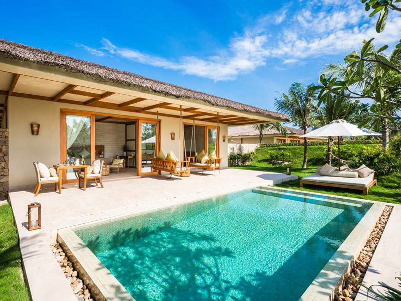 フーコック島で女性人気No1のプライベートプール付ヴィラ&スパ放題のご褒美リゾート♪ 『好きな時間と場所で食べられる朝食』のサービスも嬉しい! マイペースにリラックスして過ごしたい方にお勧めです。客室は全室プールヴィラで 通常のお部屋でも128㎡と非常に広くゆったりとお過ごし頂けます。